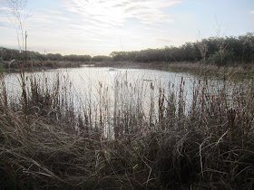 The tall grasses around the pond provide a nice habitat for wildlife that depend on estuaries such as this to survive. Marshes provide cover for whooping crane's nesting habitat.