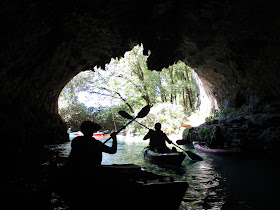 I like the way the opening of the cave provides a "frame" for this photograph, that shows two kayakers crossing their paddles to form an "X"!